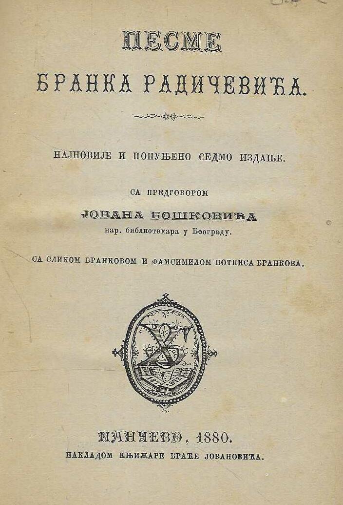 | Izdavač i godina | Nakladom knjižare braće Jovanovića, 1880. |