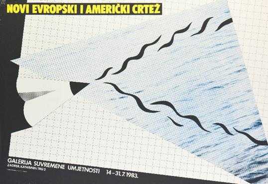 Plakat – Novi Europski i američki crteži. Autor: Dalibor Martinis. 14.07.-31.07.1983.