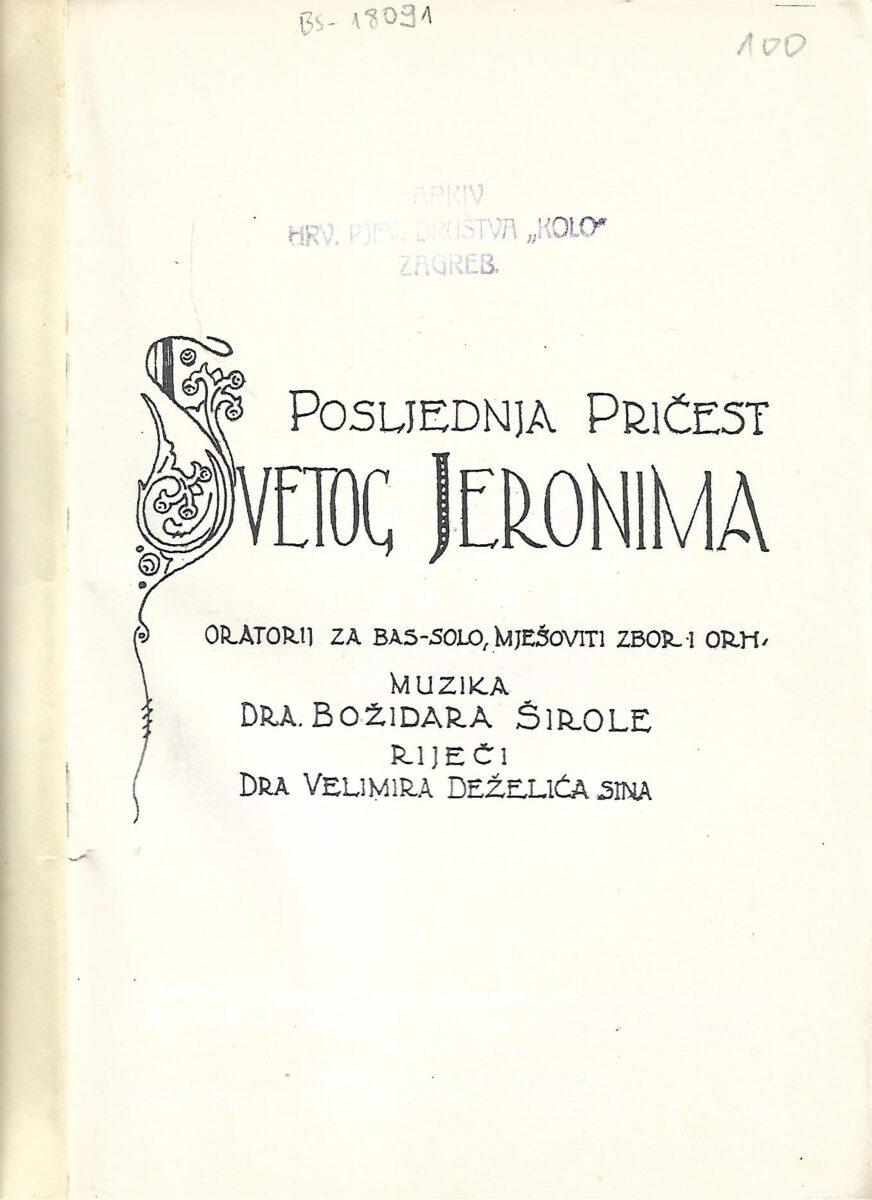 Muzika Božidara Širole, Riječi V. Deželića S.
