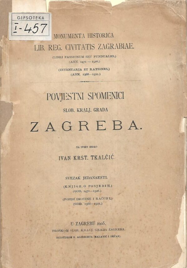 Povjestni spomenici slob.kralj.grada Zagreba – Monumenta Historica librae regia civitatis Zagrabiae – Svezak 11.