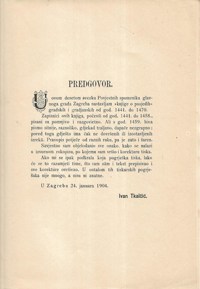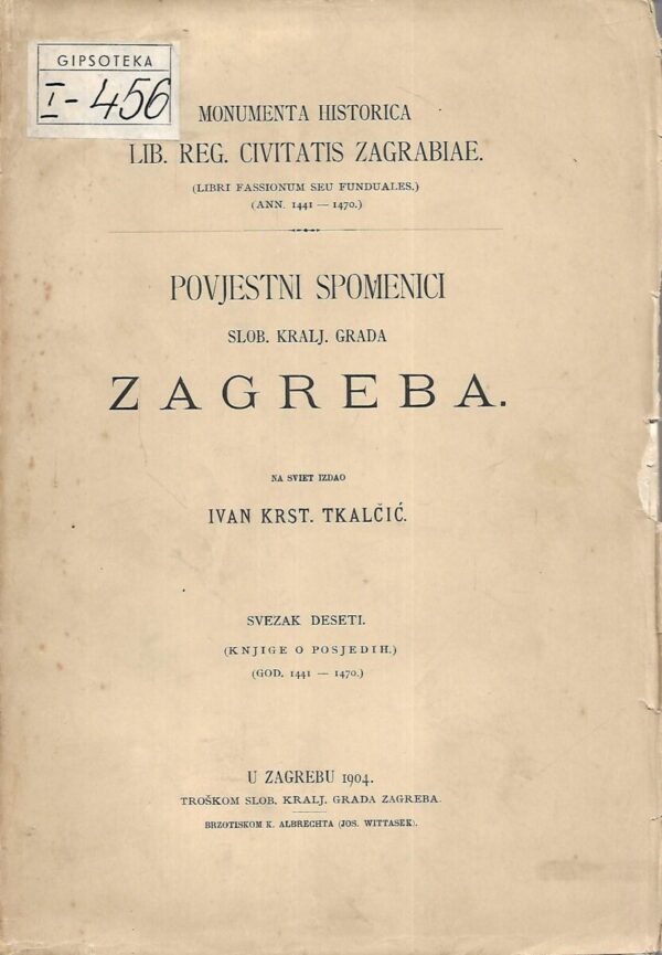 Izdavač i godina: Ivan Krst.Tkalčić, 1904.