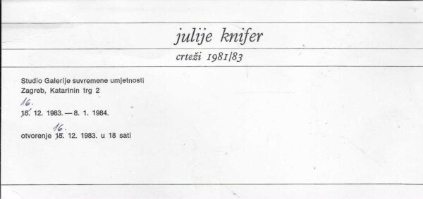 | Izdavač i godina: | Galerija suvremene umjetnosti, 1983. |