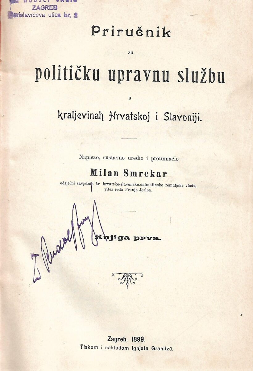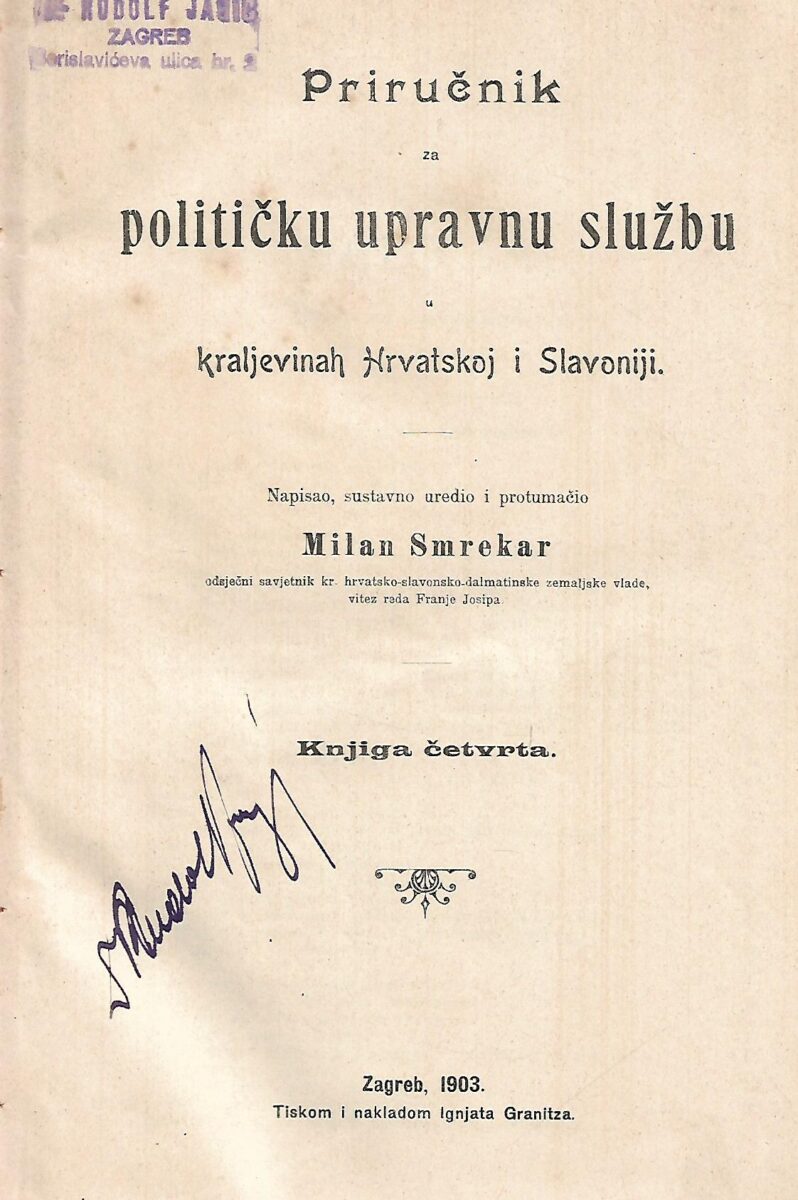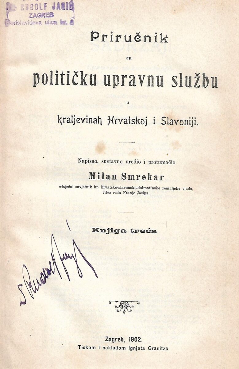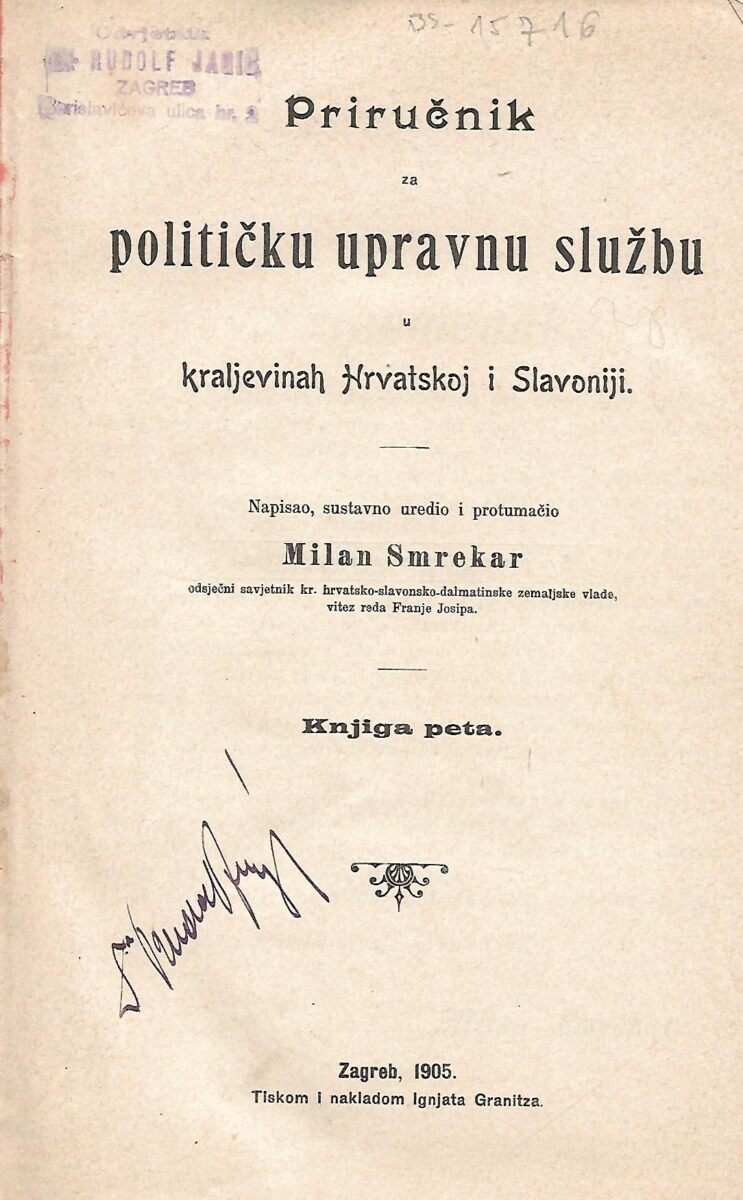 Napisao, sustavno uredio i protumačio Milan Smrekar, odsječni savjetnik kraljevine hrvatsko-slavonsko-dalmatinske vlade, vitez reda Franje Josipa.