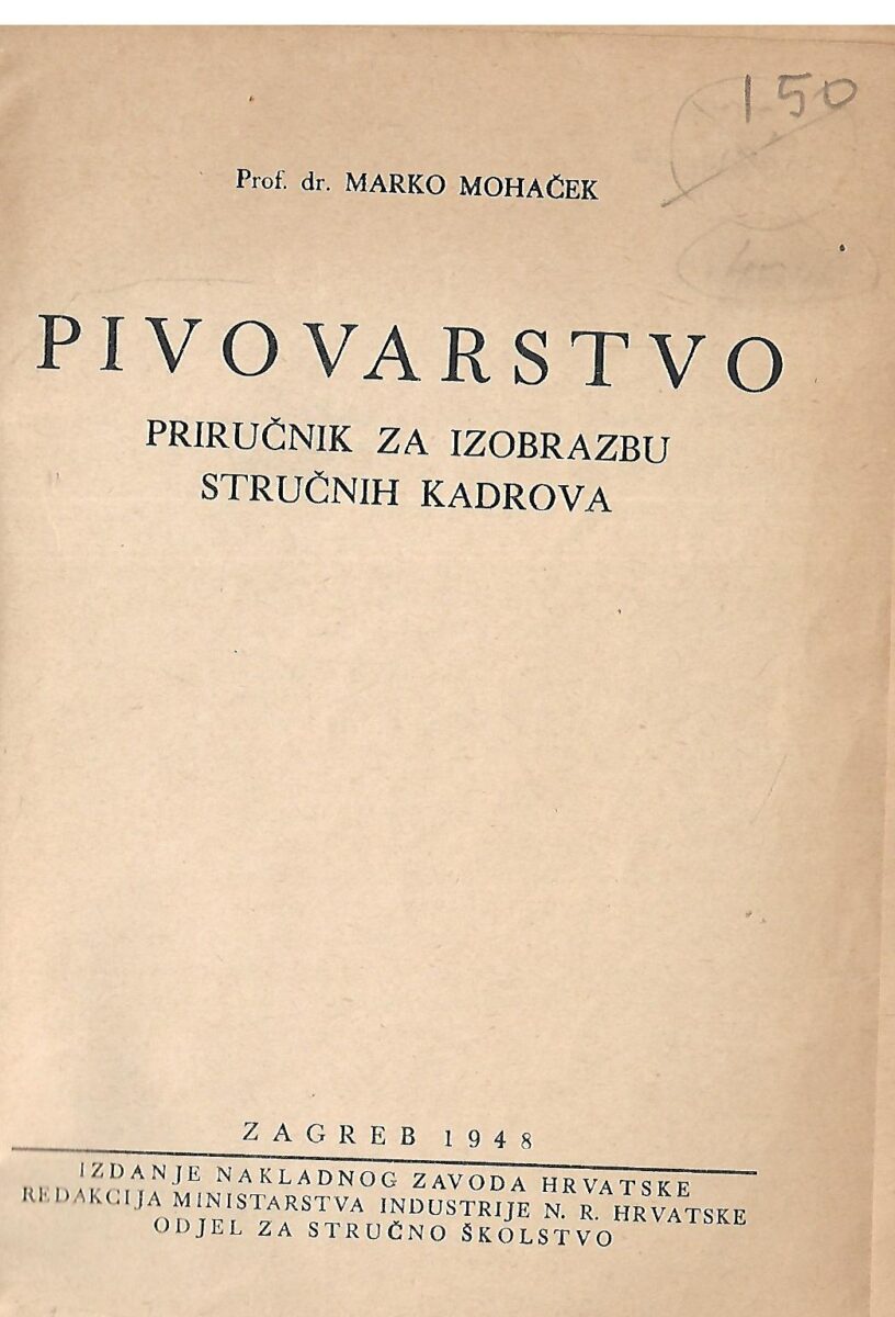 Prof. dr. Marko Mohaček: Pivovarstvo, priručnik za izobrazbu stručnih kadrova