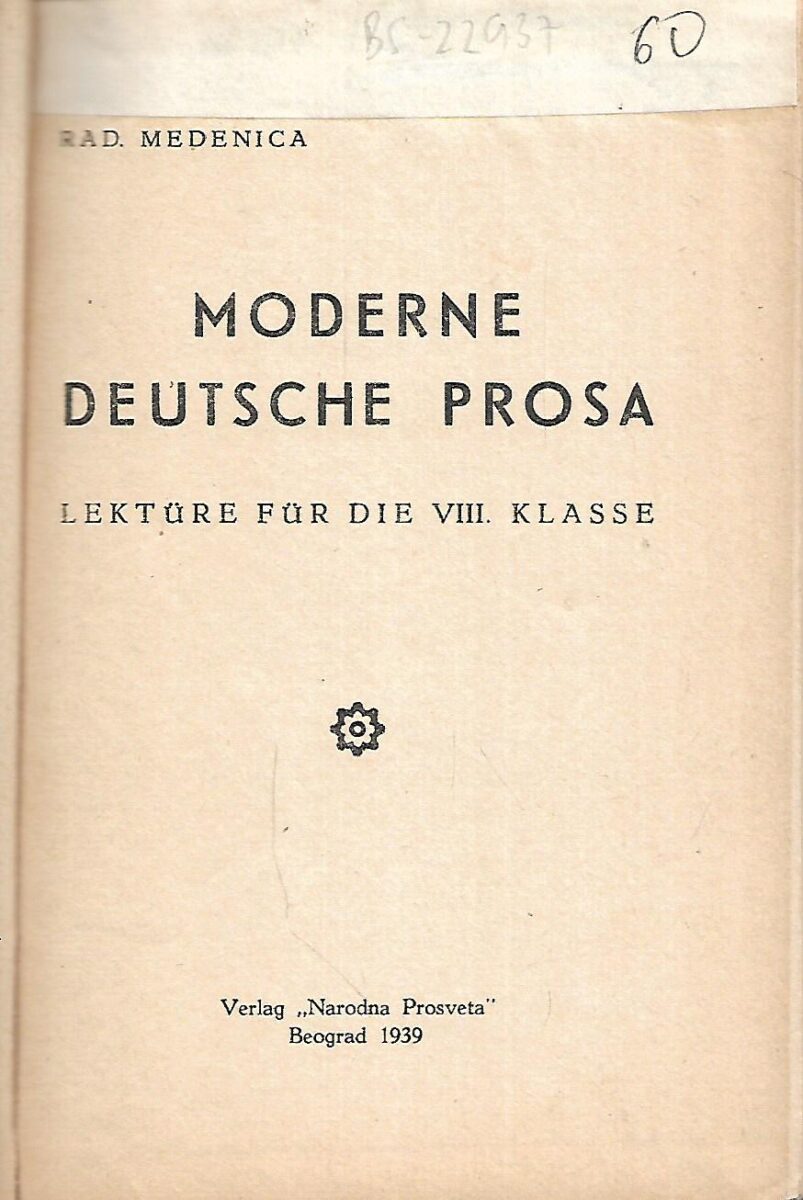 Izdavač i godina: Narodna prosveta, BG, 1939.