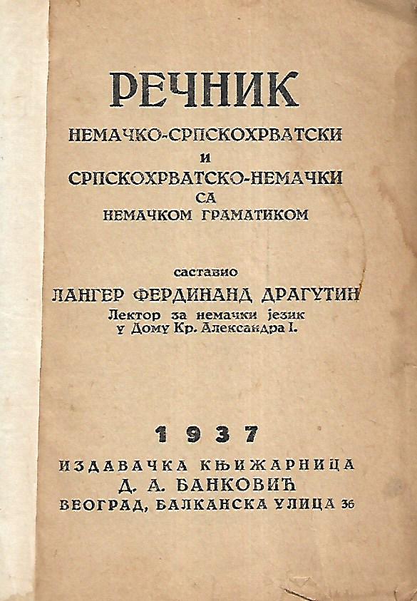 Izdavač i godina: Knjižarna D.A.Bakovića, Beograd, 1937.
