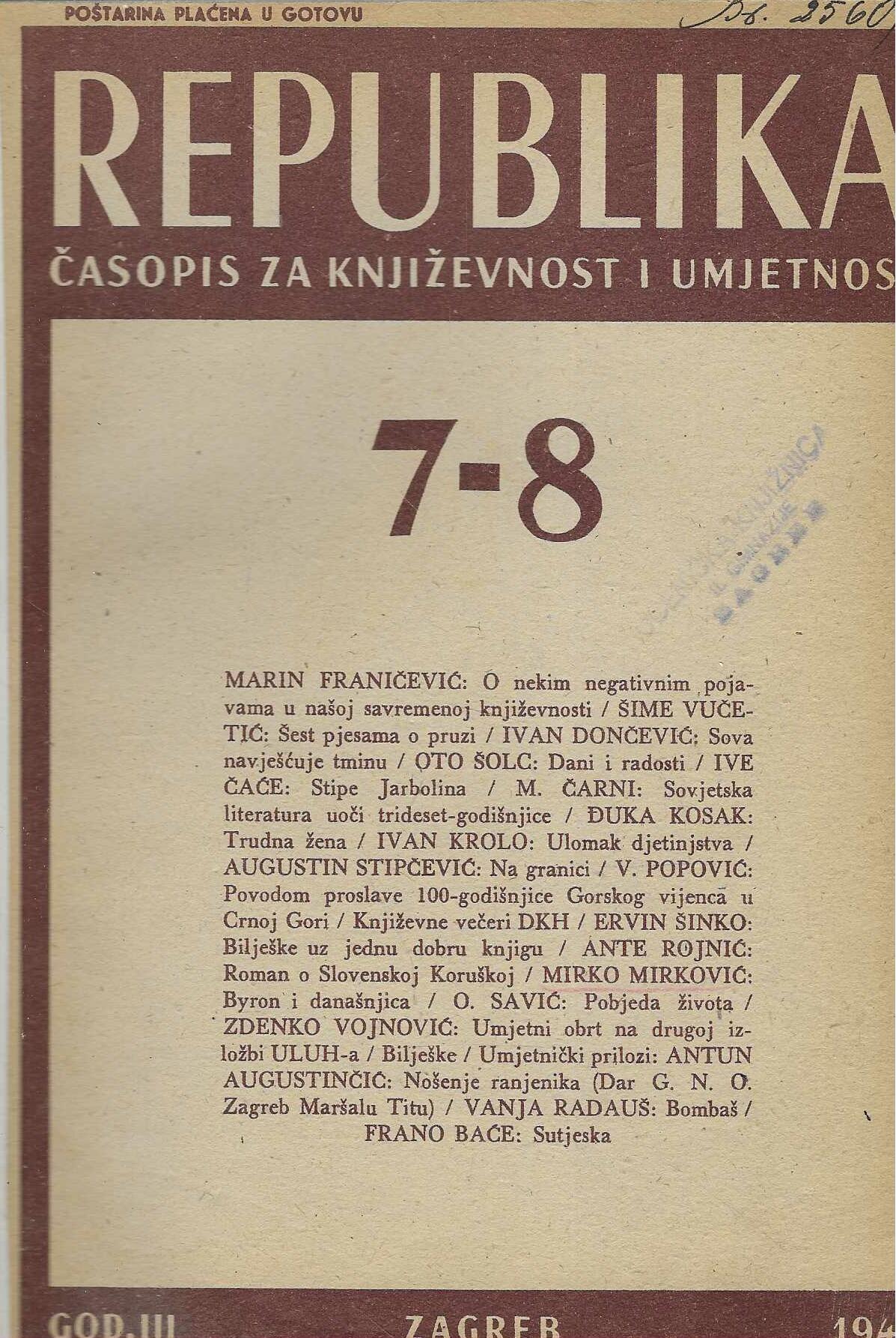 | Izdavač i godina: | Republika, 1947. |