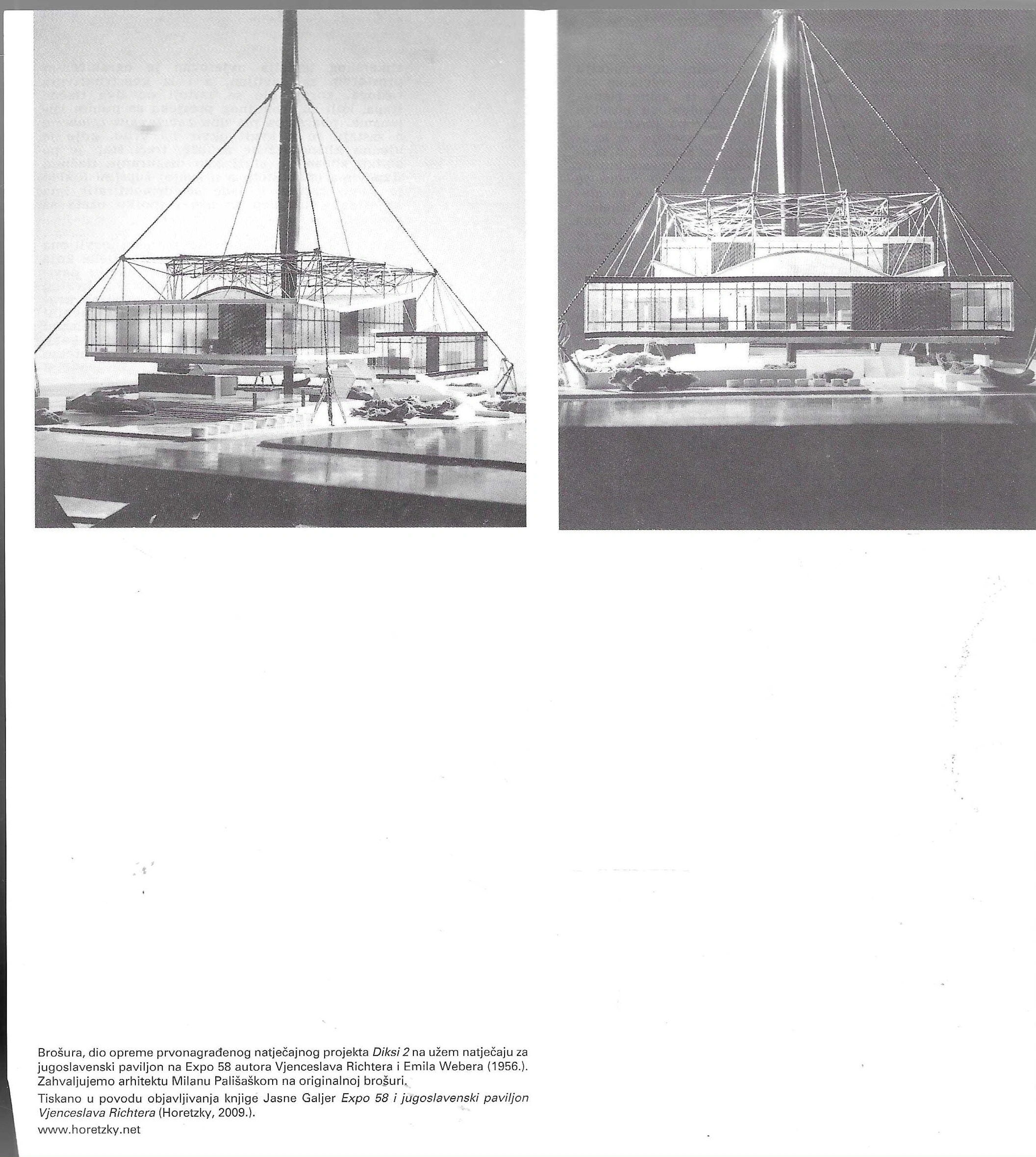 Tiskano u povodu objavljivanja knjige Jasne Galjer Expo 58 i jugoslavenski paviljoni Vjenceslava Richtera (Horetzky, 2009.).