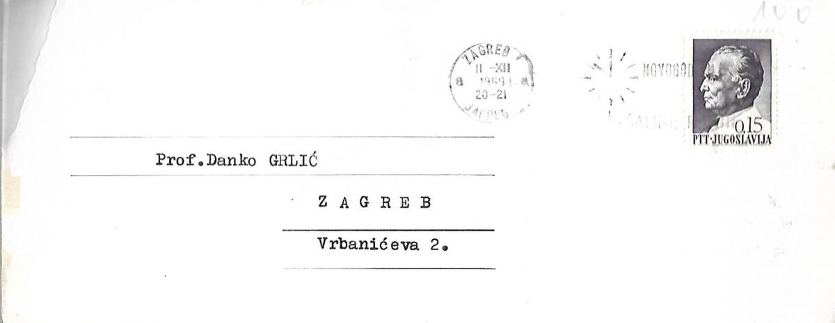 Pozivnica za izložbu Romana Perusina upućena prof. Danku Grliću