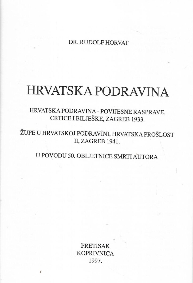 Rudolf Horvat: Hrvatska Podravina – pretisak