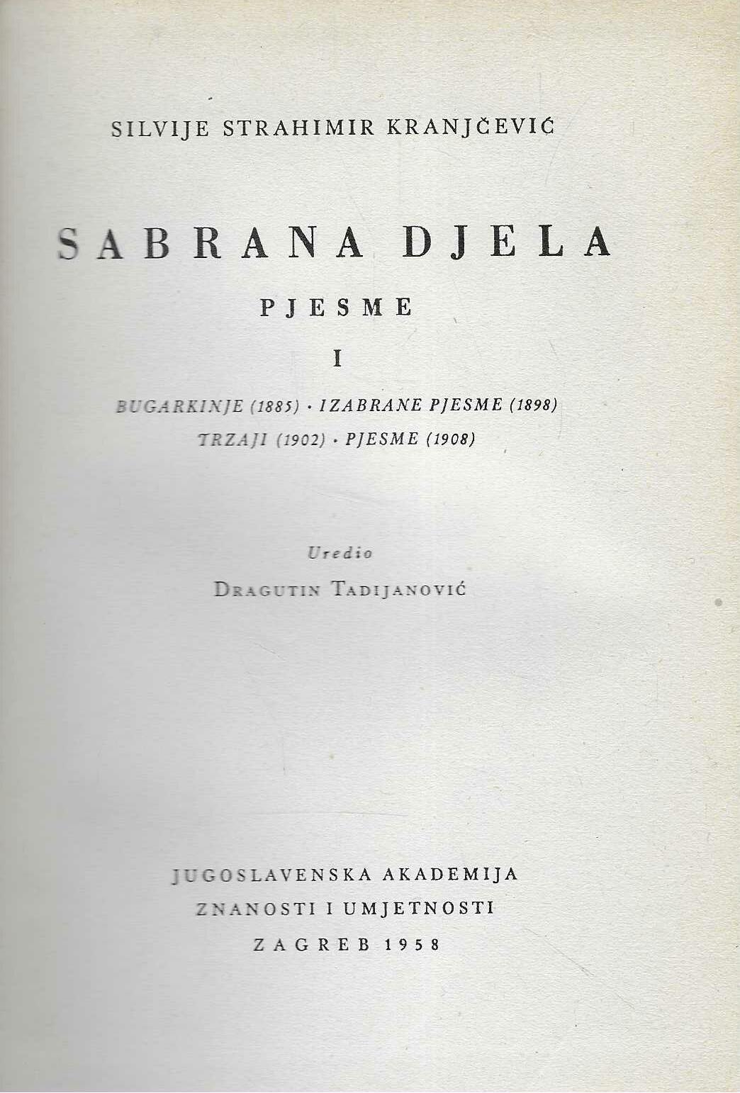 Izdavač i godina: JAZU, 1958.