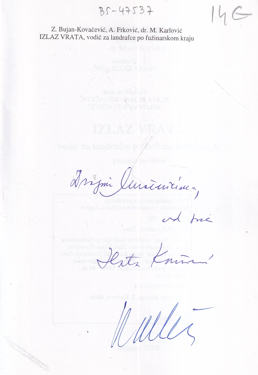 | Izdavač i godina: | MATICA HRVATSKA DELNICE, 1998. |