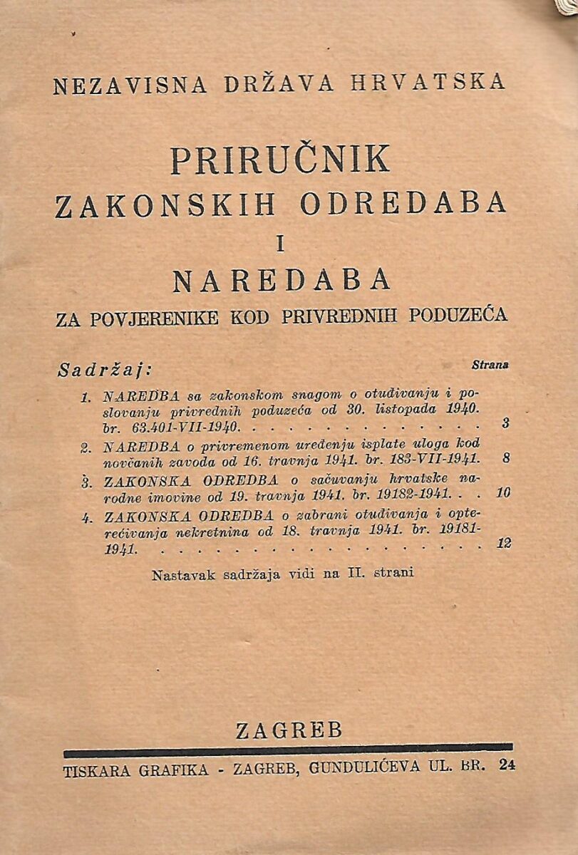 Skupina autora: NDH – Priručnik zakonskih odredaba i naredaba za povjerenike kod privrednih poduzeća