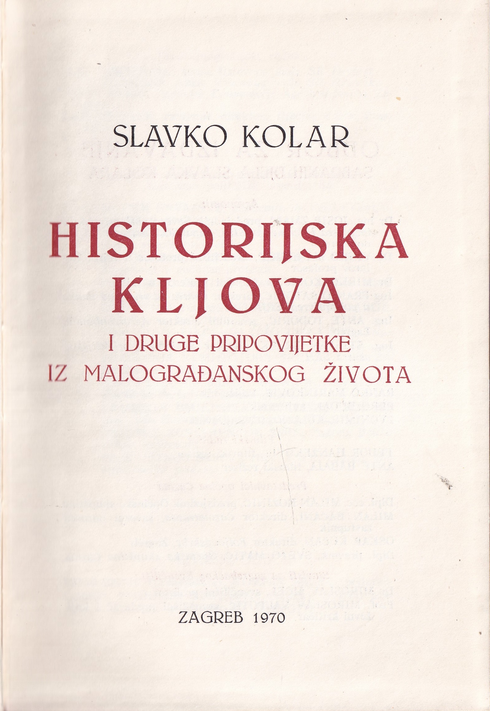 1. Historijska kljova i druge pripovijetke iz malograđanskog života