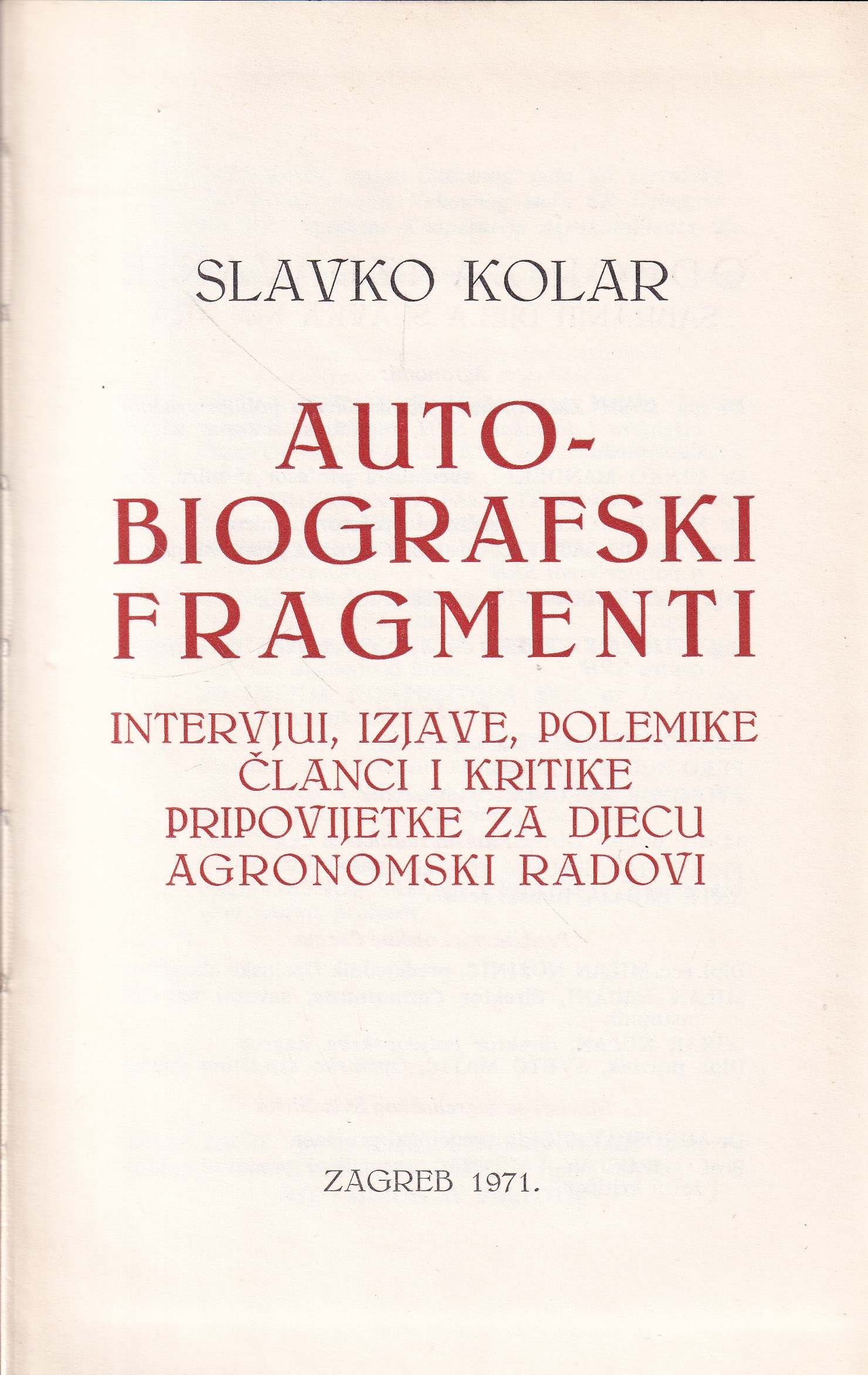 5. Autobiografski fragmenti, intervjui, izjave, polemike, članci i kritike, pripovijetke za djecu, agronomski radovi