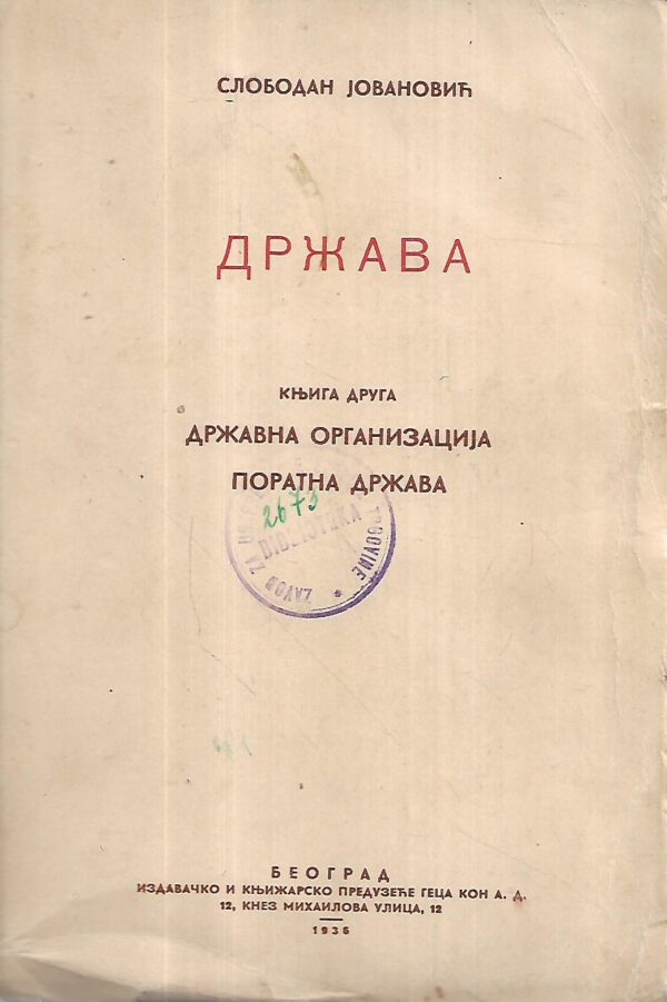 Izdavač i godina: Geca Kon, Beograd, 1936.