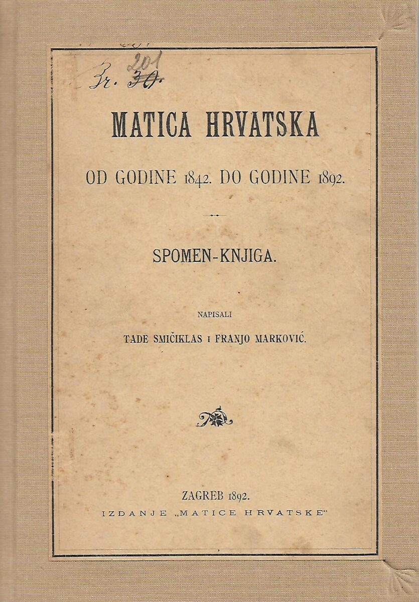 Izdavač i godina izdavanja: MH, 1892.