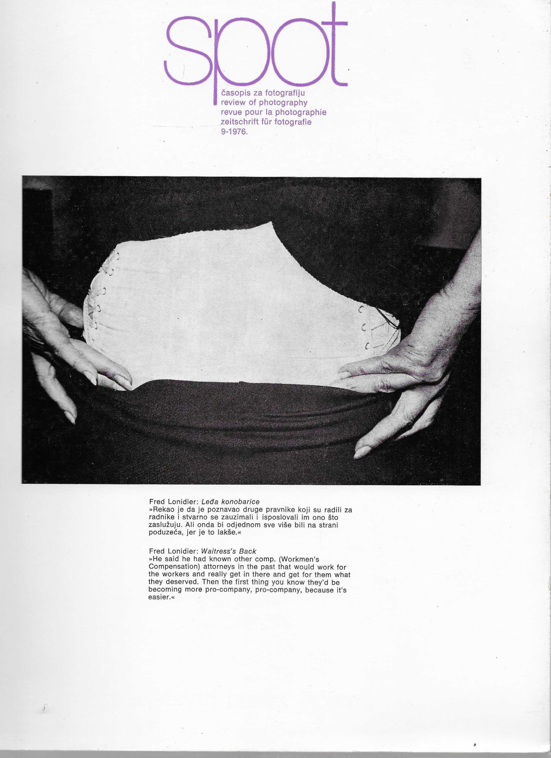 Naslovnica Fred Lonidier. Pišu Allan Sekula, Jack Fulton, Goran Trbuljak, Jorge Rueda, Radovan Ivančević, Thomas Schwinger.