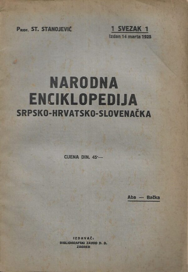 St. Stanojević: Narodna enciklopedija srpsko-hrvatsko-slovenačka, 1 svezak 1