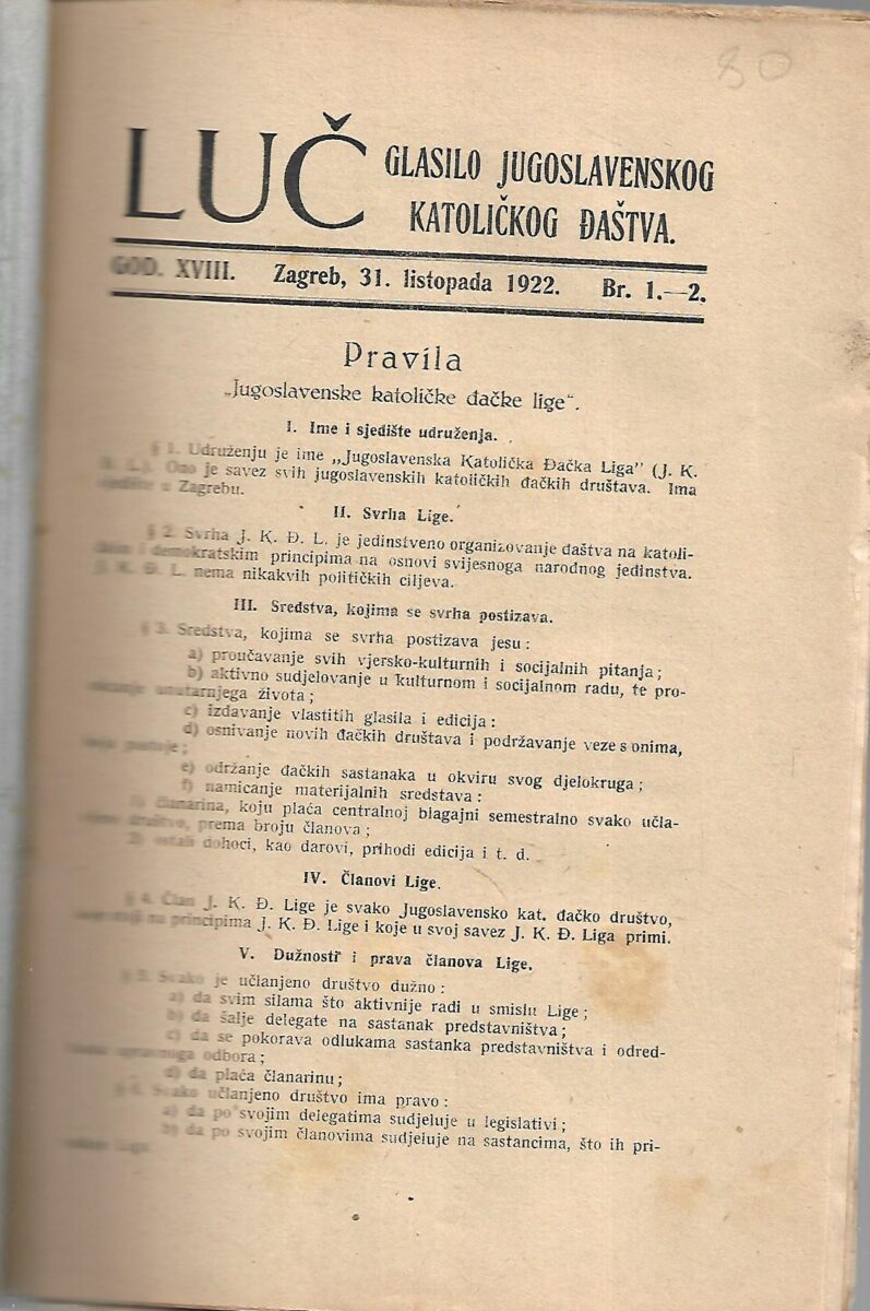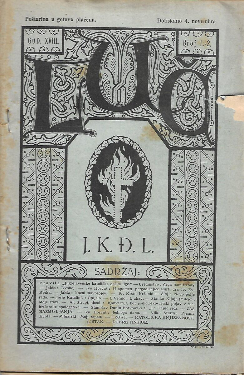 Stjepan Podolšak (ur.): Luč – Glasilo jugoslovenskog katoličkog đaštva – God. XVIII.- Broj 1-2 /31. listopada. 1922.