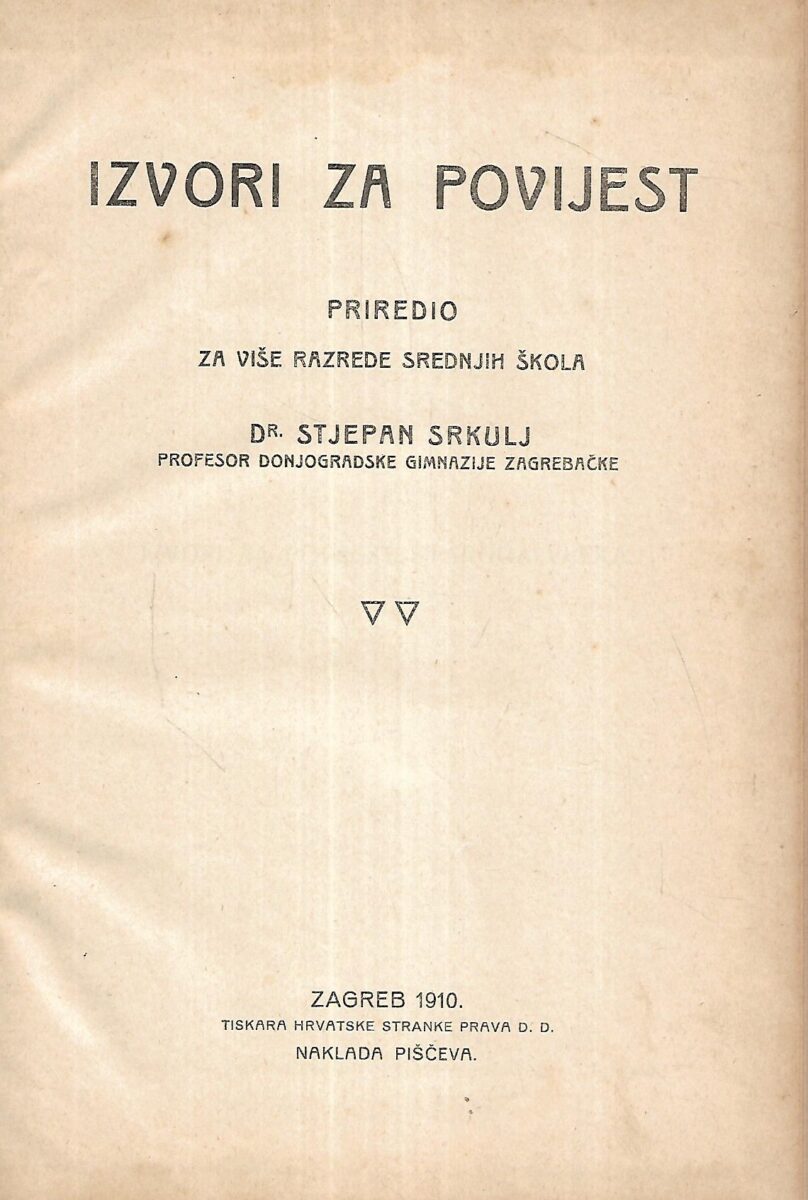 Izdavač i godina: Naklada piščeva, 1910.