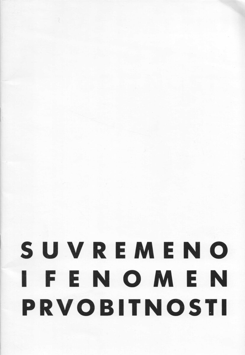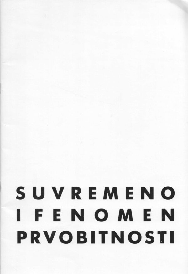 Katalog Suvremeno i fenomen prvobitnosti, HDLU, Galerija KARAS, Zagreb. 28.12.1989.-18.01.1990. Publikacija broj 77. U odličnom stanju. Tiskano 250 primjeraka.