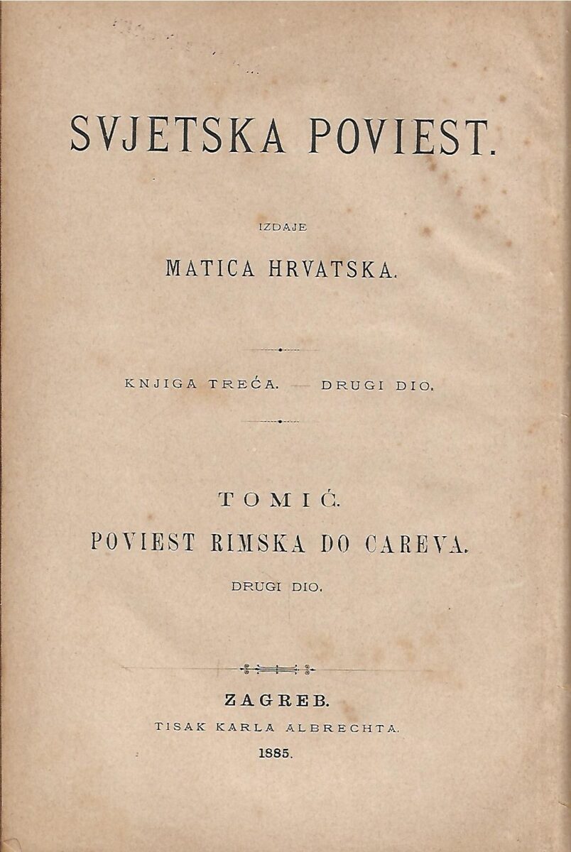 Izdavač i godina: Matica hrvatska, 1885.