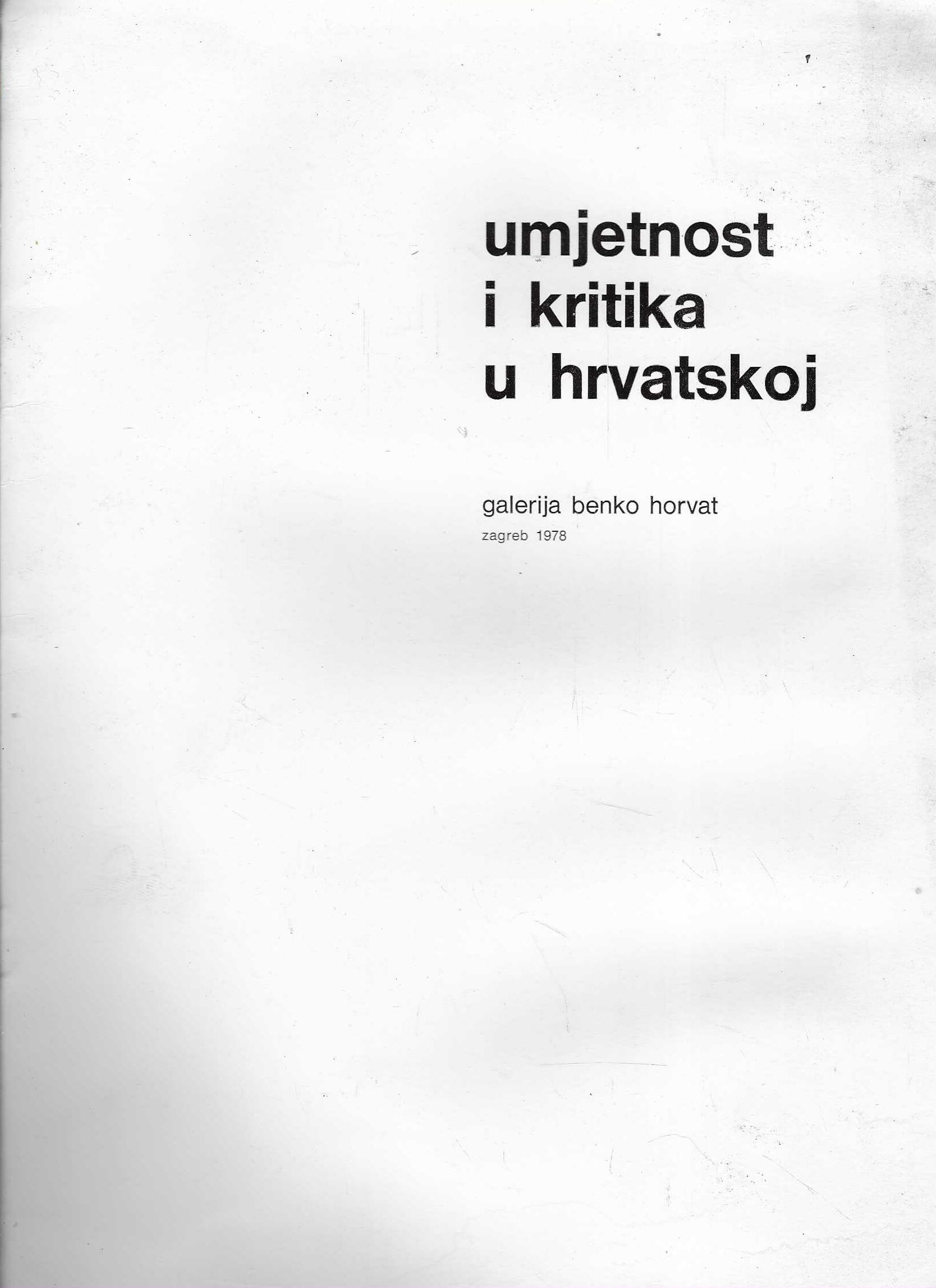 Umjetnost i kritika u Hrvatskoj, Galerija Benko Horvat, Zagreb 1978. Kritičar Ivan Kukuljević-Sakcinski, 26.10.-19.11. 2.izdanje (2/1918). Katalog je u odličnom stanju, tiskan je u 500 primjeraka