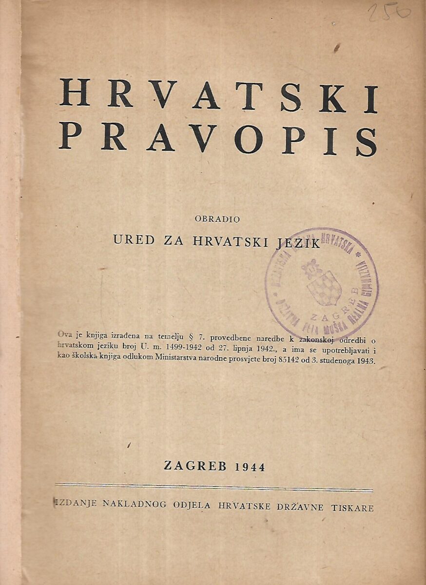 Izdavač i godina: Nakladni odbor Hrvatske državne tiskare, 1944.