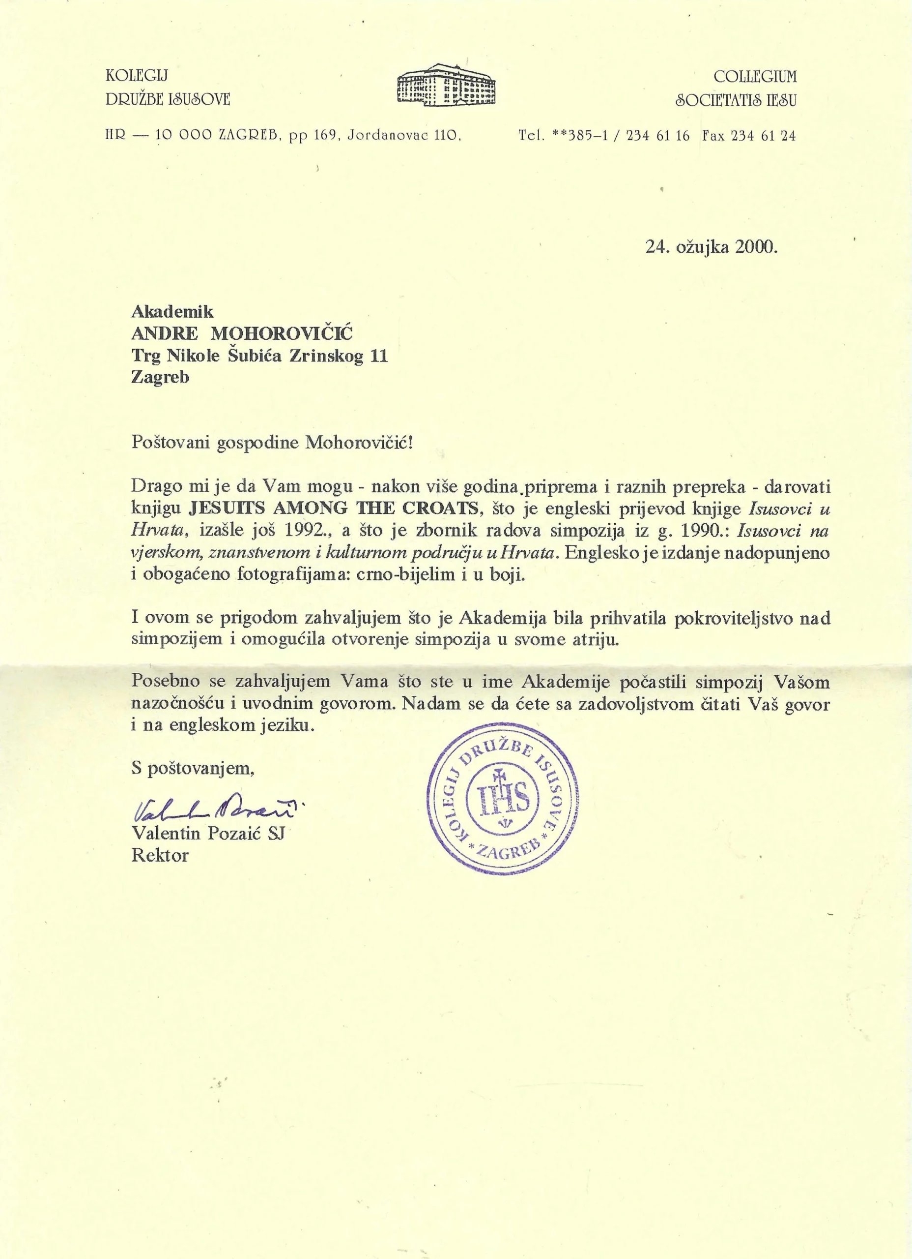 VALENTIN POZAIĆ AKADEMIKU MOHOROVIČIĆU.