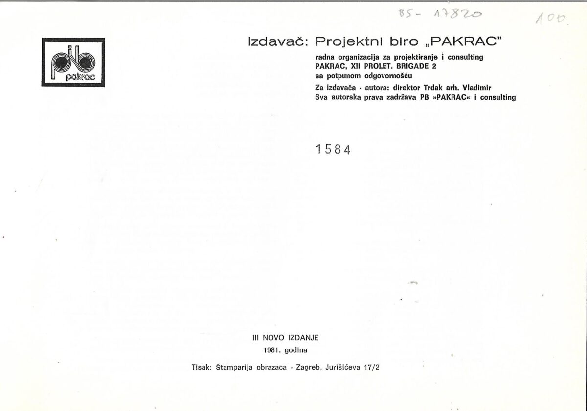 Izdavač i godina: Projektni biro “Pakrac”, 1981.