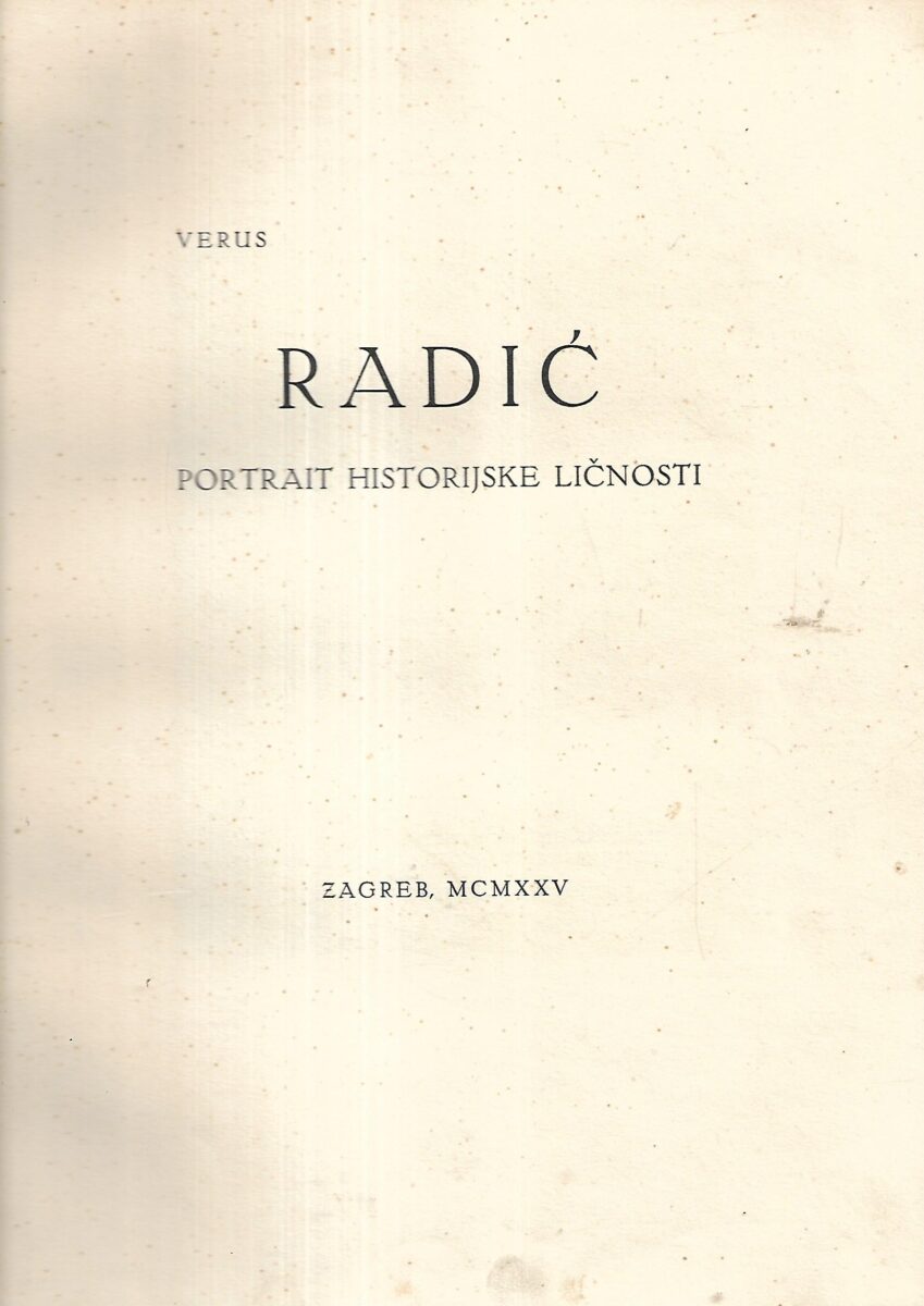 Poticajem i poznatom mecenatskom dobrotom gospodina Antuna Janekovića, veleindustrijalca u zagrebu, intimnog prijatelja Stjepana Radića još iz mladih dana, izlazi u ovom ruhu pred našu javnost ovaj portrait, zamišljen kao predavanje, a stvoren u prosincu godine 1924. povodom 20 godišnjice Hrvatske seljačke stranke.