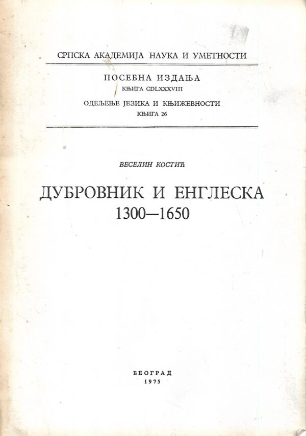 Veselin Kostić: Dubrovnik i Engleska 1300-1650 (ćirilica)