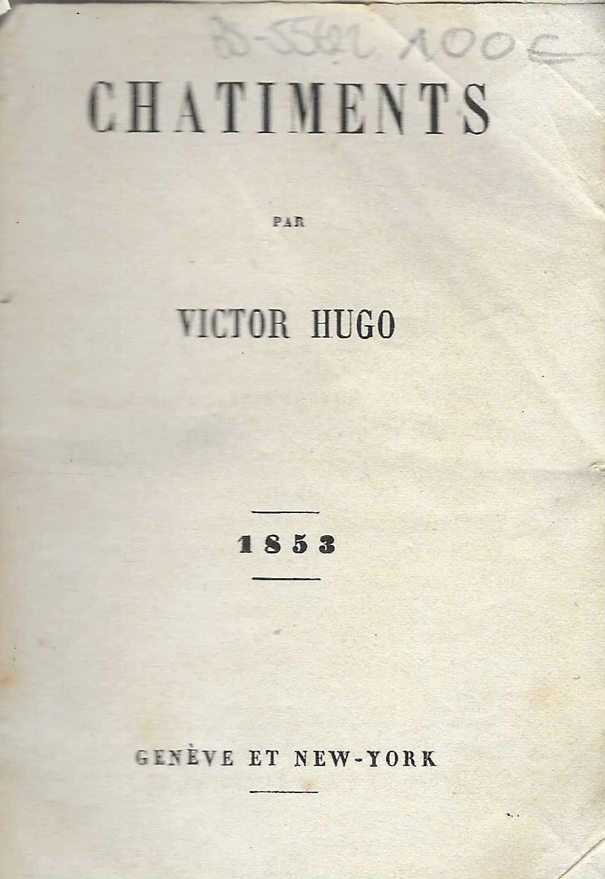 Da bi zaobišao cenzuru, Hugo je dao dva izdanja Les Châtiments: jedno na briselsku adresu, službeno, tj. cenzurirano, i ovo, na ženevsku i njujoršku adresu, neslužbeno, s cjelovitim tekstom.