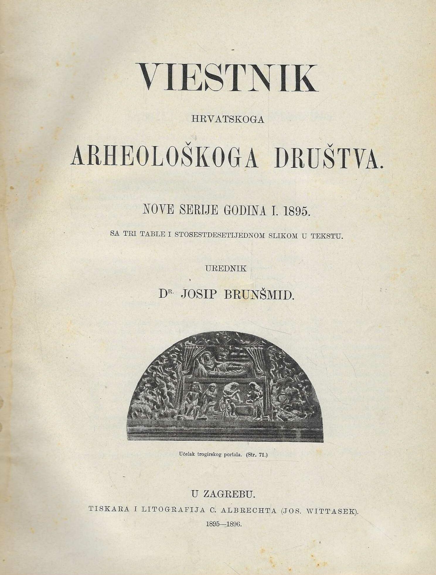 | Izdavač i godina: | Hrvatsko arheološko društvo, Tiskara i litografija C. Albrechta, Zagreb 1895.-1896. |
