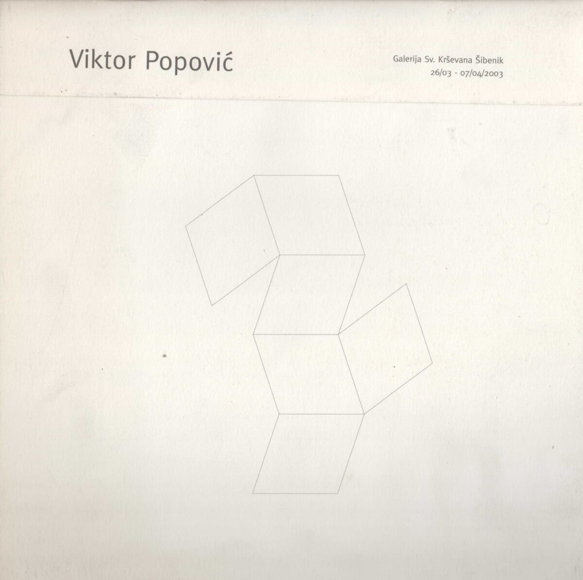 Viktor Popović, katalog izložbe.Galerija Sv. Krševana, Šibenik, 26.03.-07.04.2003.