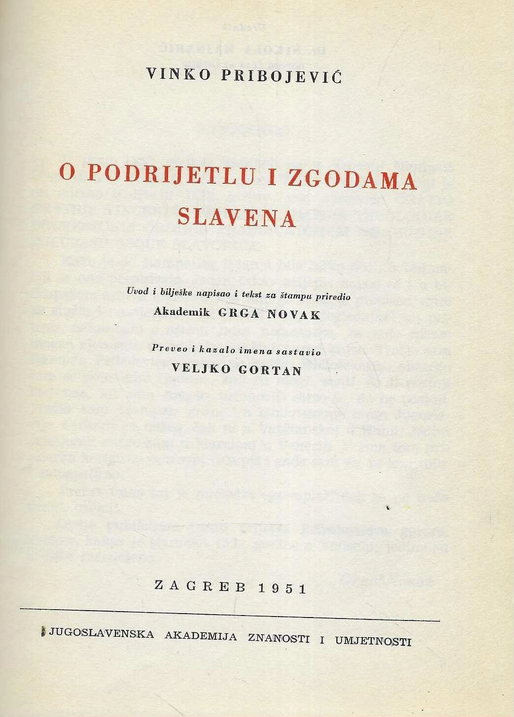 | Izdavač i godina: | JAZU, Zagreb, 1951. |