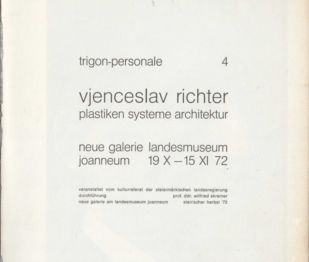 Vjenceslav Richter, katalog izložbe, Plastiken system architecture. 19.10.-15.11.1972. Trigon-personale 4