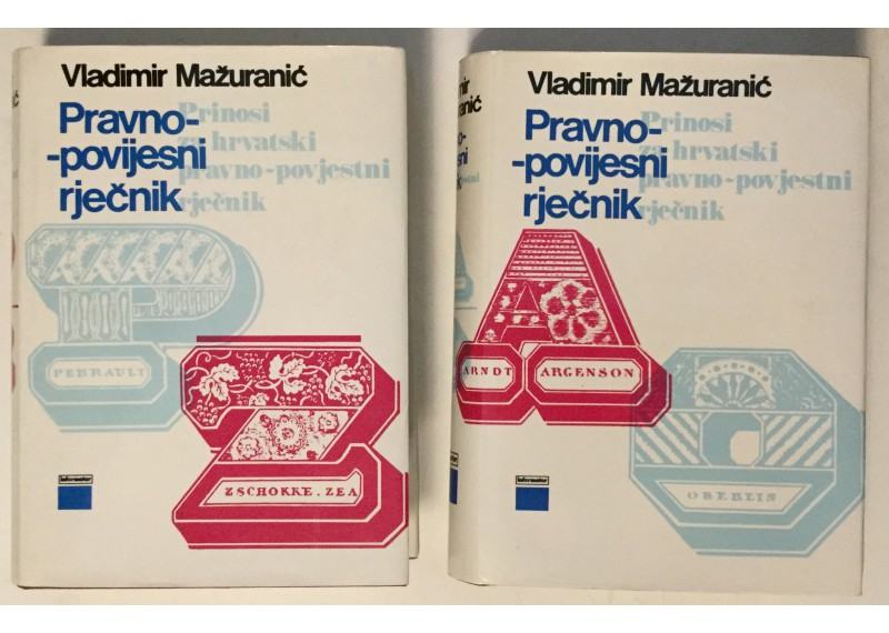 Jugoslavenska akademija izdala je od 1908.-1922. godine u deset svezaka djelo Vladimira Mažuranića: Prinosi za hrvatski pravno-povijesni rječnik.