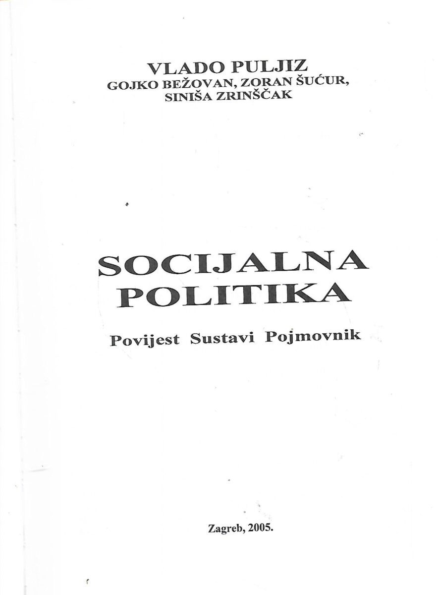Vlado Puljiz, Gojko Bežovan, Zoran Šućur i Siniša Zrinščak: Socijalna politika