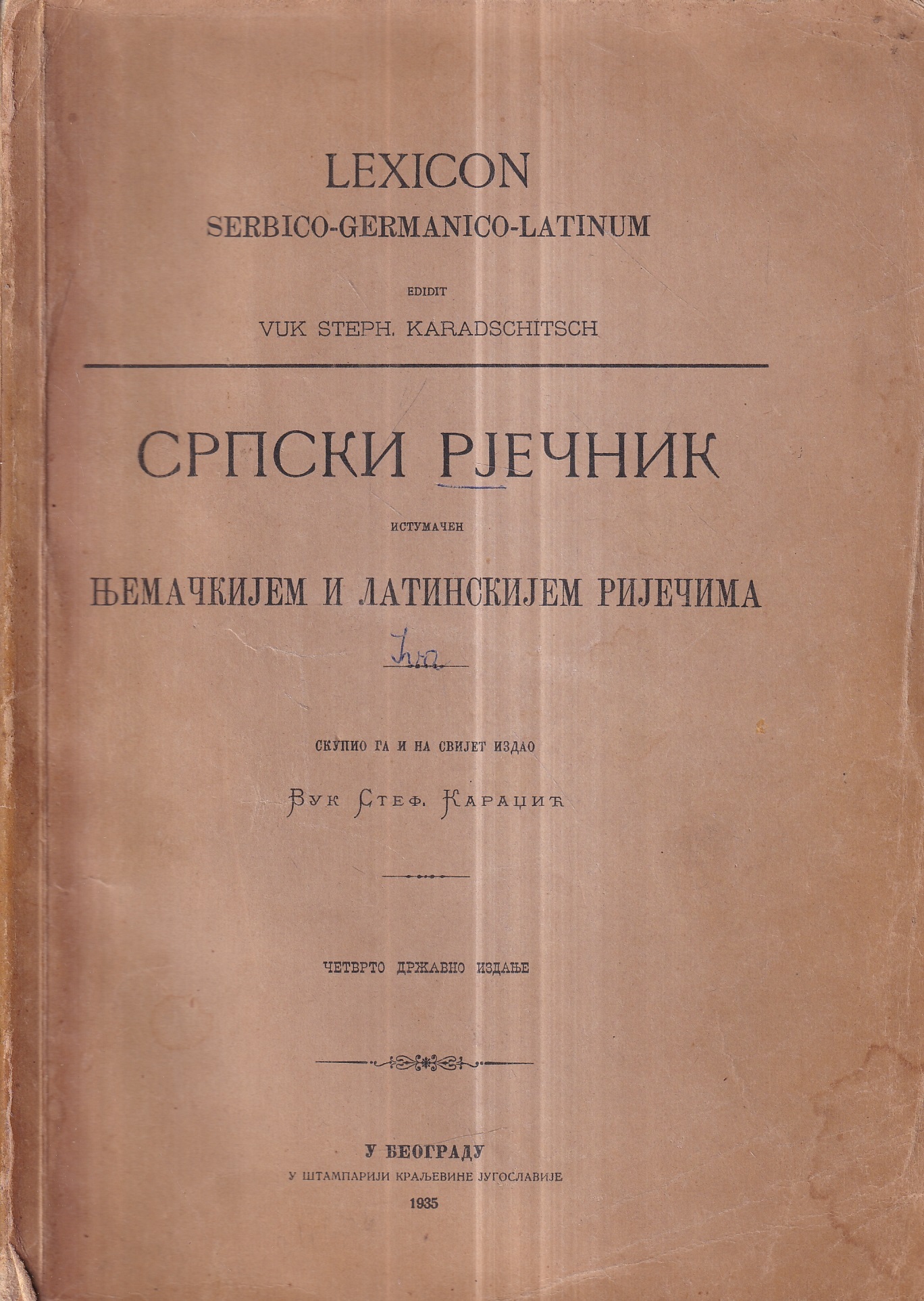| Izdavač i godina: | ŠTAMPARIJA KRALJEVINE JUGOSLAVIJE, 1935. |