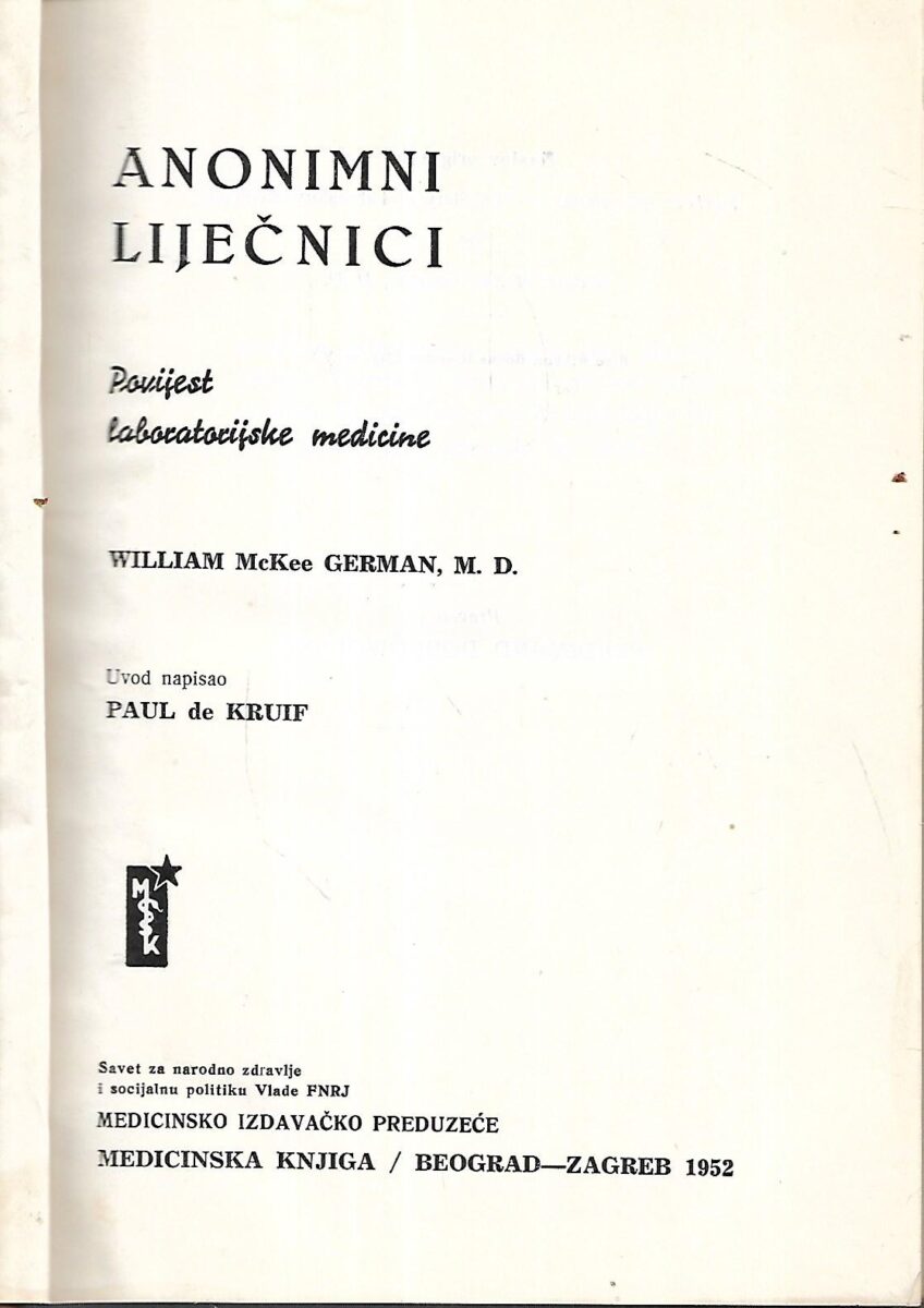 Izdavač i godina: Medicinska knjiga, Beograd-Zagreb, 1952.
