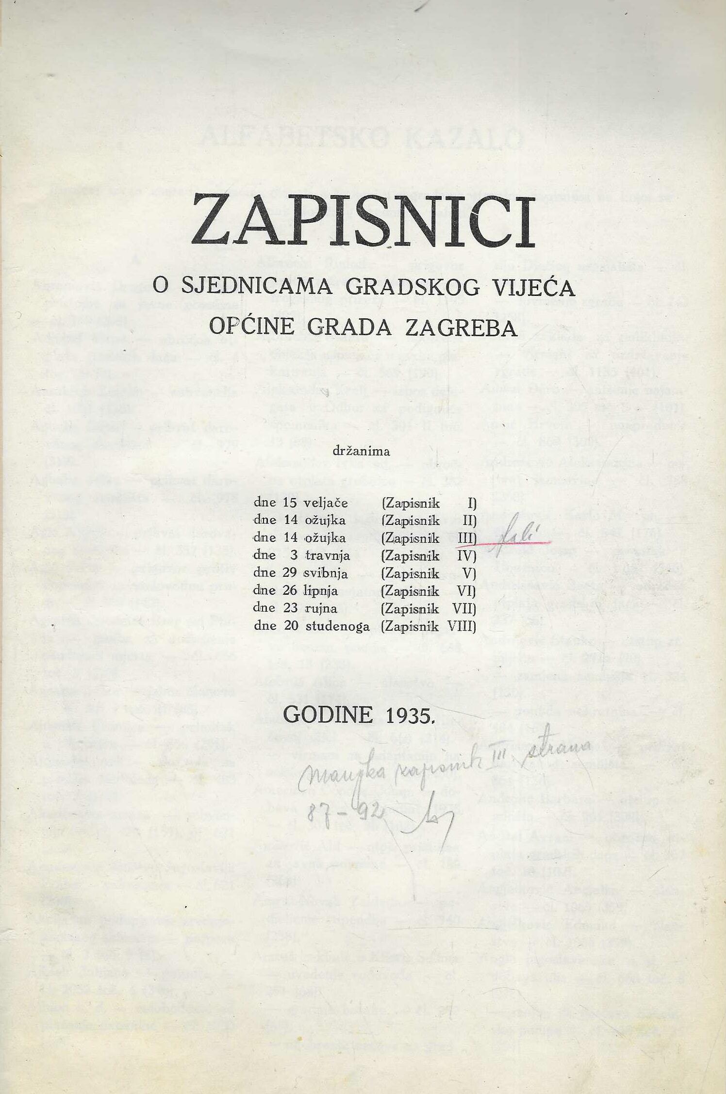 Zapisnici o sjednicama Gradskog vijeća općine Grada Zagreba držanima