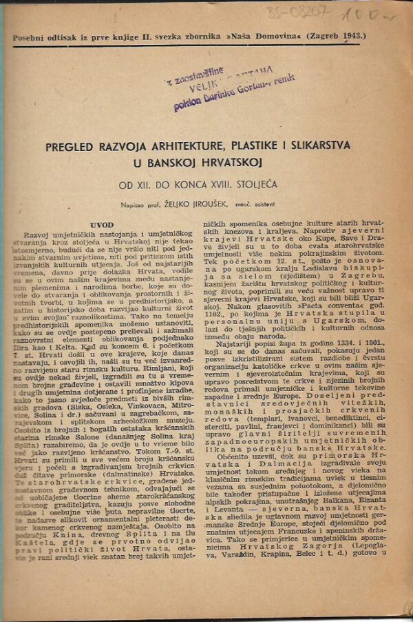 Izdavač i godina: Posebni odtisak iz prve knjige II. sveska zbornika “Naša domovina” (Zagreb 1943.)