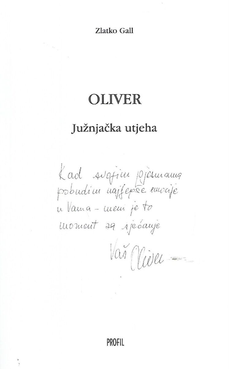 Zlatko Gall: Oliver – južnjačka utjeha (potpis Olivera Dragojevića)