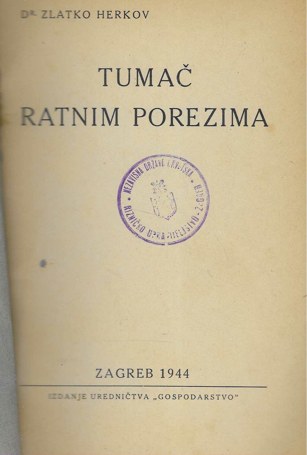 | Izdavač i godina: | Gospodarstvo, 1944. |