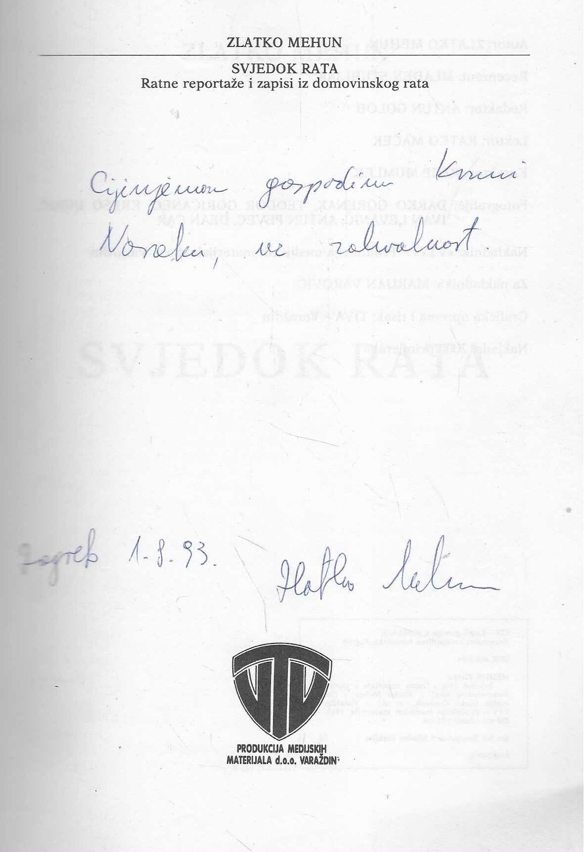Izdavač i godina: VTV,Produkcija medijskih materijala, Varaždin, 1993.
