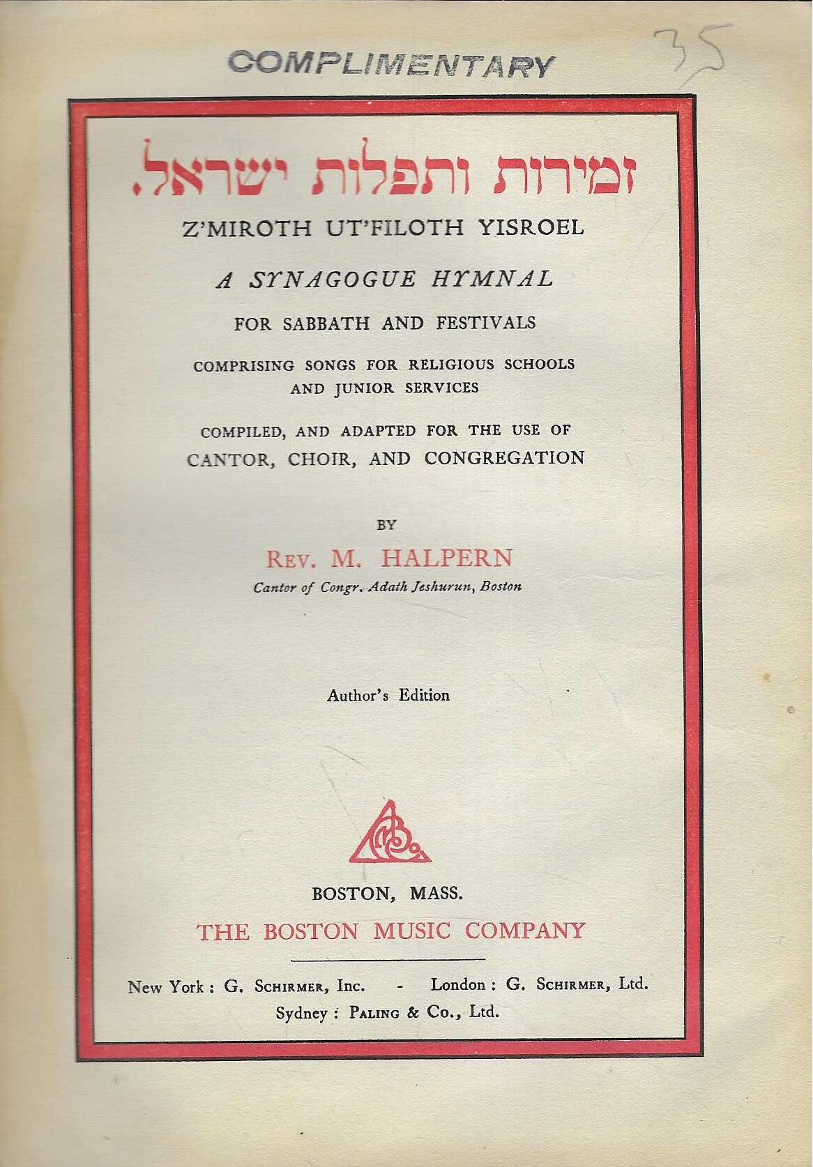 | Izdavač i godina: | The Boston Music Company, 1915. |