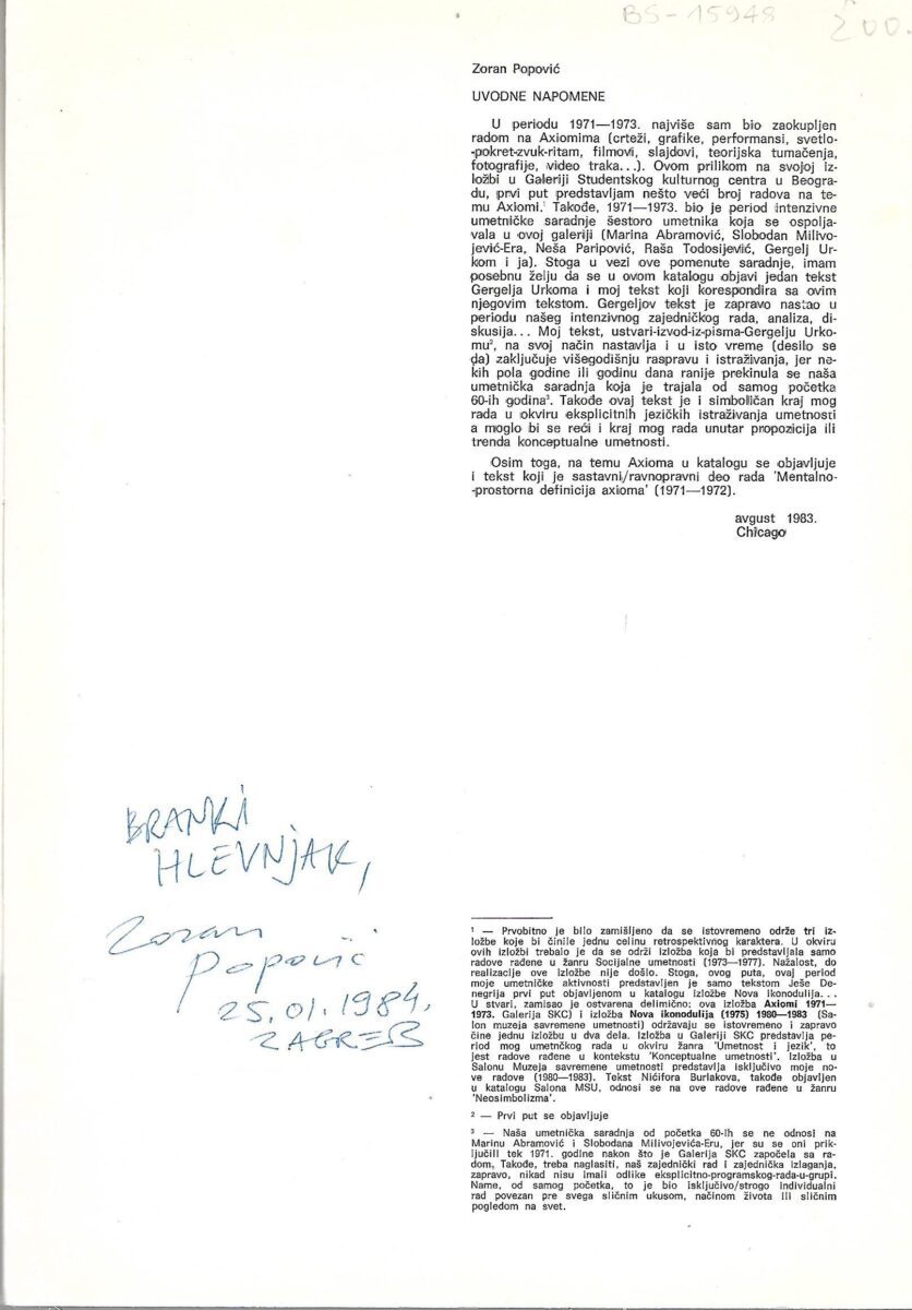 Zoran Popović: Axiomi 1971-1973.