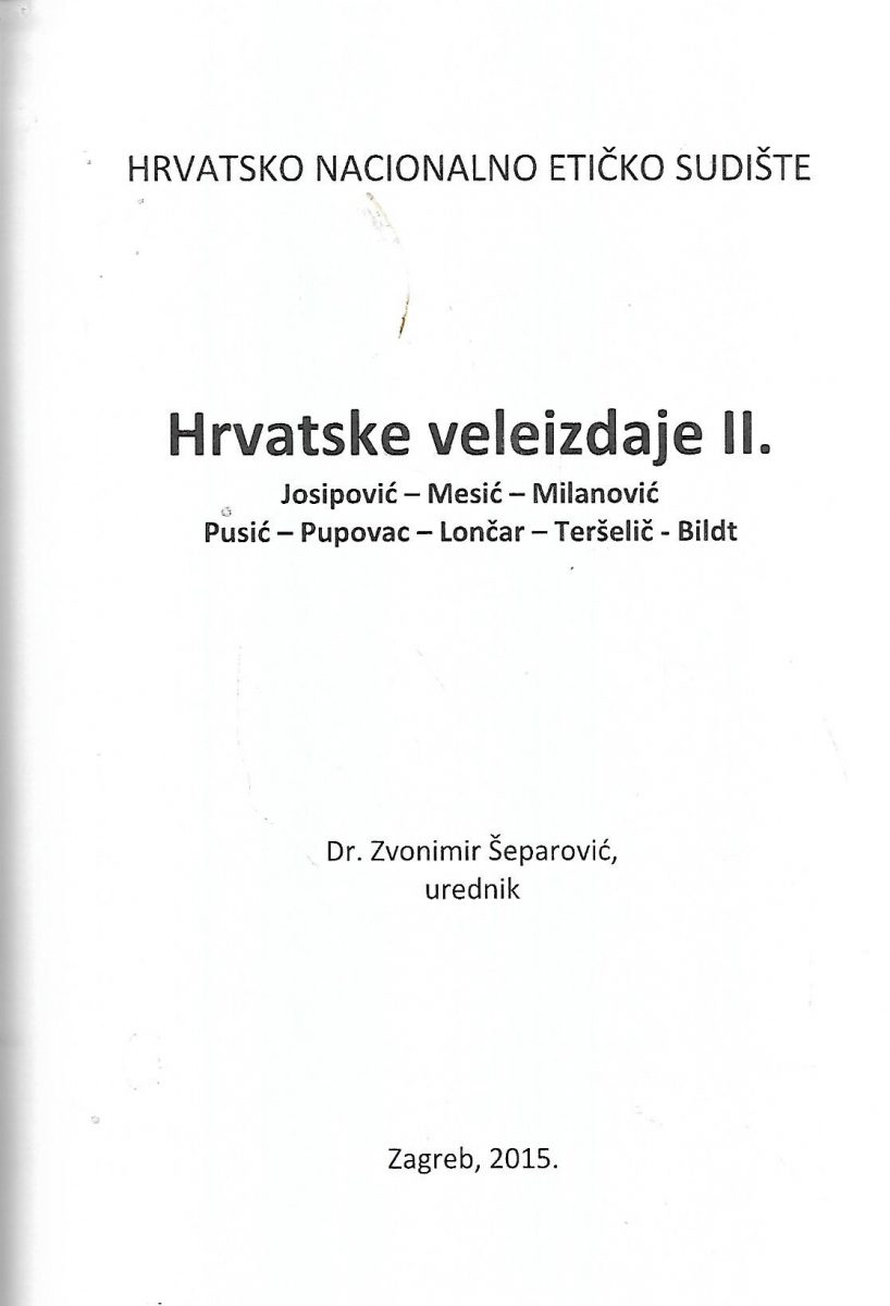 Izdavač i godina: Hrvatsko m nacionalno etičko sudište, 2015.